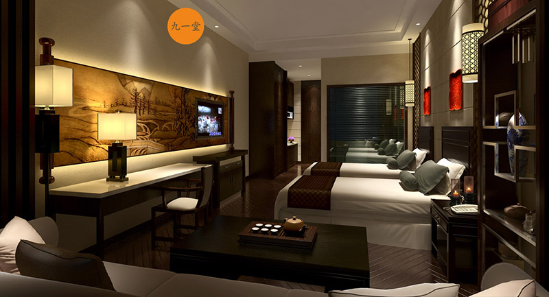 九一堂商業空間設計通過對市場調研,以漢文化作為漢韻酒店的精神內核,以成都首席漢文化主題酒店的姿態亮相, 獨對秦磚漢瓦,朗誦唐詩宋詞,沐浴清風明月,何等境界!盛世的漢風文化,感受文人的氣度山河,走在歷史的長廊里。猶如昨日,讓你恍若隔世--古琴、古箏、象棋、圍棋、文房四寶、茶具,青白玉、石刻、瓦當等,讓你仿若來到真正的未央宮、長樂宮。九一堂商業空間設計以漢朝建筑風格及裝飾元素為基調,讓您重溫雄漢文化,體驗空間的尊榮服務和環境。酒店客房分為未央宮和長樂宮,琴藝房、棋藝房、書畫房、茶藝房等。殿內配有古琴、古箏、象棋、圍棋、文房四寶、茶具等,以漢朝青白玉、石刻、瓦當、服飾作為主要視覺色調,并擷取漢代詩賦文化、繪畫文化、建筑文化、音樂文化、茶藝文化,形成了獨具特色的空間感受。通過對漢文化價值觀梳理、酒店服務體驗建設兩方面入手 將漢文化主題酒店-漢韻酒店形成差異化品牌形象,讓目標客群形成清晰明了的文化認知。
